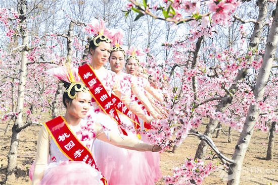 ![]() 3月28日,市城鄉(xiāng)一體化示范區(qū)陽店鎮(zhèn)李曲村一處桃園里,十幾位身著“桃花仙子”服裝的村民歡迎前來賞花的游客。
