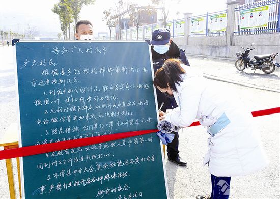 春節(jié)期間,盧氏縣組織廣大黨員、干部、群眾在出境路段和行政村、居民區(qū)的交通要道設(shè)立縣級卡點(diǎn)9個、鄉(xiāng)村卡點(diǎn)782個,筑起一道道防控疫情的銅墻鐵壁。圖為近日一行人在盧氏縣橫澗鄉(xiāng)衙前村疫情防控卡點(diǎn)登記個人出行信息。        程專藝 攝