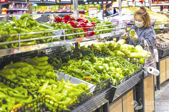 1月30日,義馬市區(qū)一家超市內(nèi),市民正在選購(gòu)茄子等日常生活用品。