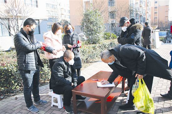 ![]() 近日,市城鄉(xiāng)一體化示范區(qū)國(guó)土建設(shè)環(huán)保局黨總支組成疫情防疫隊(duì),深入轄區(qū)內(nèi)匯智公寓小區(qū)對(duì)居民進(jìn)行分戶(hù)排查、登記。同時(shí),通過(guò)愛(ài)心企業(yè)購(gòu)買(mǎi)大白菜和白蘿卜,向小區(qū)居民免費(fèi)贈(zèng)送,受到大家歡迎。圖為一位居民在領(lǐng)到蔬菜后在登記簿上簽名。 曹莎莎 王玉卓 攝