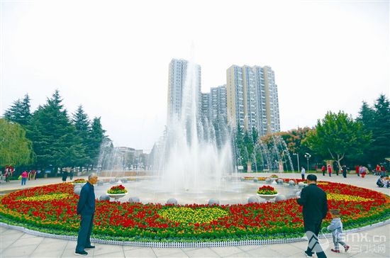 “雙節(jié)”臨近,市園林科研所將培育的4.2萬余盆各色花卉精心布置在黃河廣場、陜州公園等城區(qū)主要游園和路段,紅、橙、黃三色花卉組成的巨型花團(tuán)造型吸引了眾多市民觀賞拍照。     本報(bào)記者 張朝峰 攝
