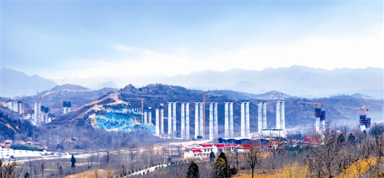 1月16日,正在建設中的欒盧(欒川縣至盧氏縣)高速公路盧氏段橫澗鄉(xiāng)境內馬窯特大橋。