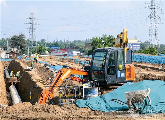 8月25日,在市區(qū)北環(huán)路東延道路打通工程工地,工人正加緊道路建設(shè)。