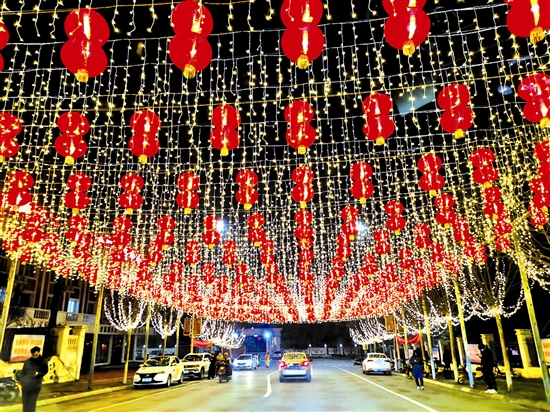 1月29日晚,裝飾一新的市區(qū)砥柱路,燈火輝煌,一派節(jié)日的喜慶氣氛。