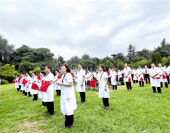 ![]() 他們,是生命的守護者、健康的守門人;他們,見證并助推了三門峽醫(yī)療衛(wèi)生事業(yè)的快速發(fā)展。為營造全社會尊醫(yī)重衛(wèi)的良好氛圍,充分激發(fā)廣大醫(yī)務人員愛崗敬業(yè)、創(chuàng)先爭優(yōu)的工作熱情,8月16日,我市舉辦“醫(yī)心跟黨走、喜迎二十大”慶祝第五個“中國醫(yī)師節(jié)”暨百名“好醫(yī)生”頒獎禮, 劉寬、劉書文、郭奎星等101名“好醫(yī)生”受到表彰。 當天,雖然天空飄著小雨,但活動現場氣氛十分熱烈。百余名身穿白大褂的醫(yī)生整齊列隊,揮舞著小紅旗,表達著內心的喜悅(如右圖);顒釉凇段业淖鎳贰陡璩鎳返雀枨欣_帷幕。市衛(wèi)健委領導宣讀百名“好醫(yī)生”表彰文件,向獲獎的101名“好醫(yī)生”表示祝賀。伴隨著激動人心的音樂,“好醫(yī)生”代表上臺接受頒獎。無論是站在聚光燈下獲得榮譽表彰,還是默默堅守在一線,醫(yī)師們身上都閃耀著“最美”光華。 “這枚沉甸甸的獎章對于我來說,不僅是肯定和激勵,更是一份責任。它時刻提醒我要明確自身的職責,奮發(fā)向上,用良好的醫(yī)德、精湛的醫(yī)術解除患者的病痛。”從醫(yī)19年的市中心醫(yī)院麻醉手術科醫(yī)生王海麗接過“好醫(yī)生”獎章,激動之情溢于言表。她多年在臨床一線手術臺上搶救生命,以精湛的醫(yī)術為患者提供了良好的就醫(yī)體驗。 “‘醫(yī)’心向黨、踔厲奮進”是今年“中國醫(yī)師節(jié)”的主題。市領導向全市廣大醫(yī)務工作者致以節(jié)日的問候和崇高的敬意,并寄語受表彰人員,要珍惜榮譽、謙虛謹慎,戒驕戒躁、再接再厲,全市廣大醫(yī)務工作者要以先進為榜樣,精研技術、服務群眾,為推進健康三門峽匯聚更多的力量,為全市衛(wèi)生事業(yè)健康發(fā)展作出新的更大貢獻。 |