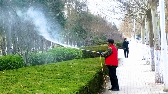 目前正值公園里的景觀樹返青萌芽期,連日來,為防止病蟲害,三門峽澗河公園組織工作人員對(duì)園內(nèi)各種樹木噴施藥物,促進(jìn)樹木健康生長(zhǎng)。本報(bào)記者 梁有才 攝