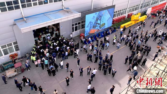 4月16日,第十屆中國(guó)·長(zhǎng)垣國(guó)際起重裝備博覽交易會(huì)在河南長(zhǎng)垣啟幕。本屆交易會(huì)吸引了來自國(guó)內(nèi)外330余家企業(yè)在此集中展示行業(yè)新技術(shù)、新產(chǎn)品、新應(yīng)用。圖為啟動(dòng)儀式現(xiàn)場(chǎng)。(無人機(jī)照片)中新社記者 李超慶 攝