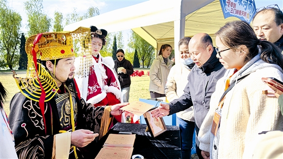 “2025白天鵝旅游季”啟動以來,我市文旅企業(yè)聚焦“古味、趣味、潮味、品味”,全面激活冬季旅游市場,推動文旅消費熱度持續(xù)走高,為市民游客打造了豐富的冬游體驗。圖為11月20日,靈寶函谷關景區(qū)身著古裝的NPC演員與游客互動,讓“古味”之旅更添沉浸魅力。 尚棟 攝
